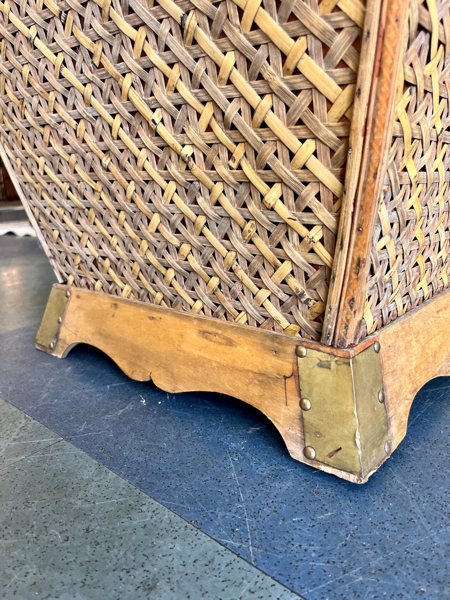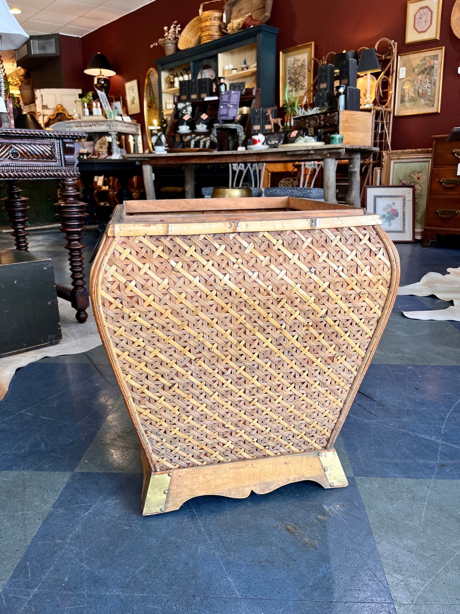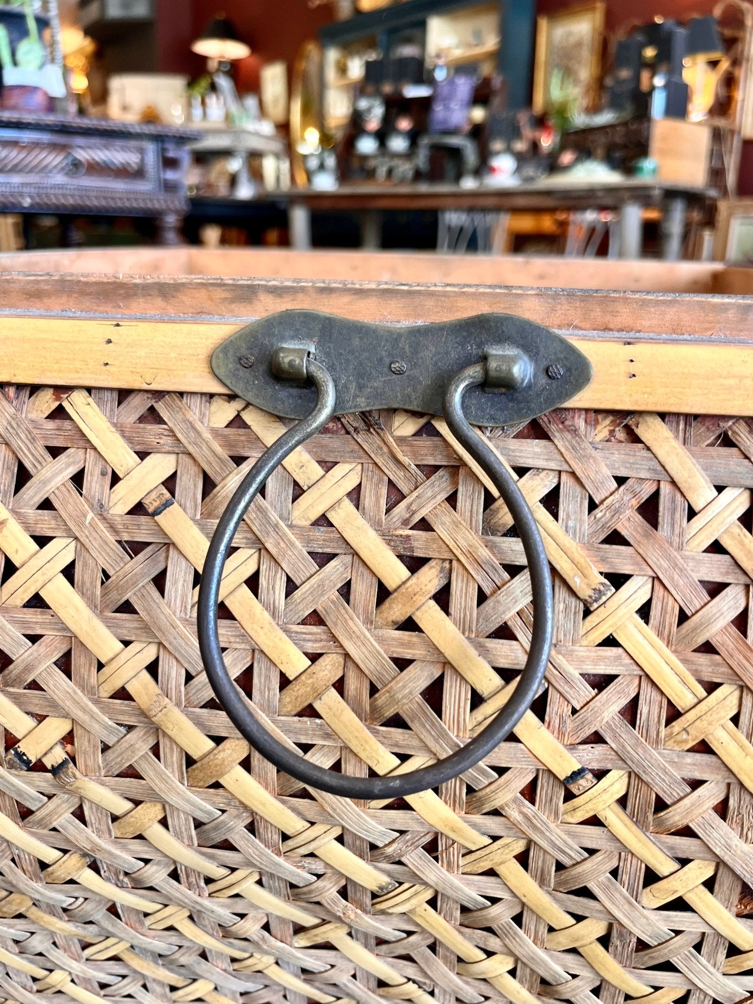 Extra Large Vintage Wicker Basket with Brass Detailing