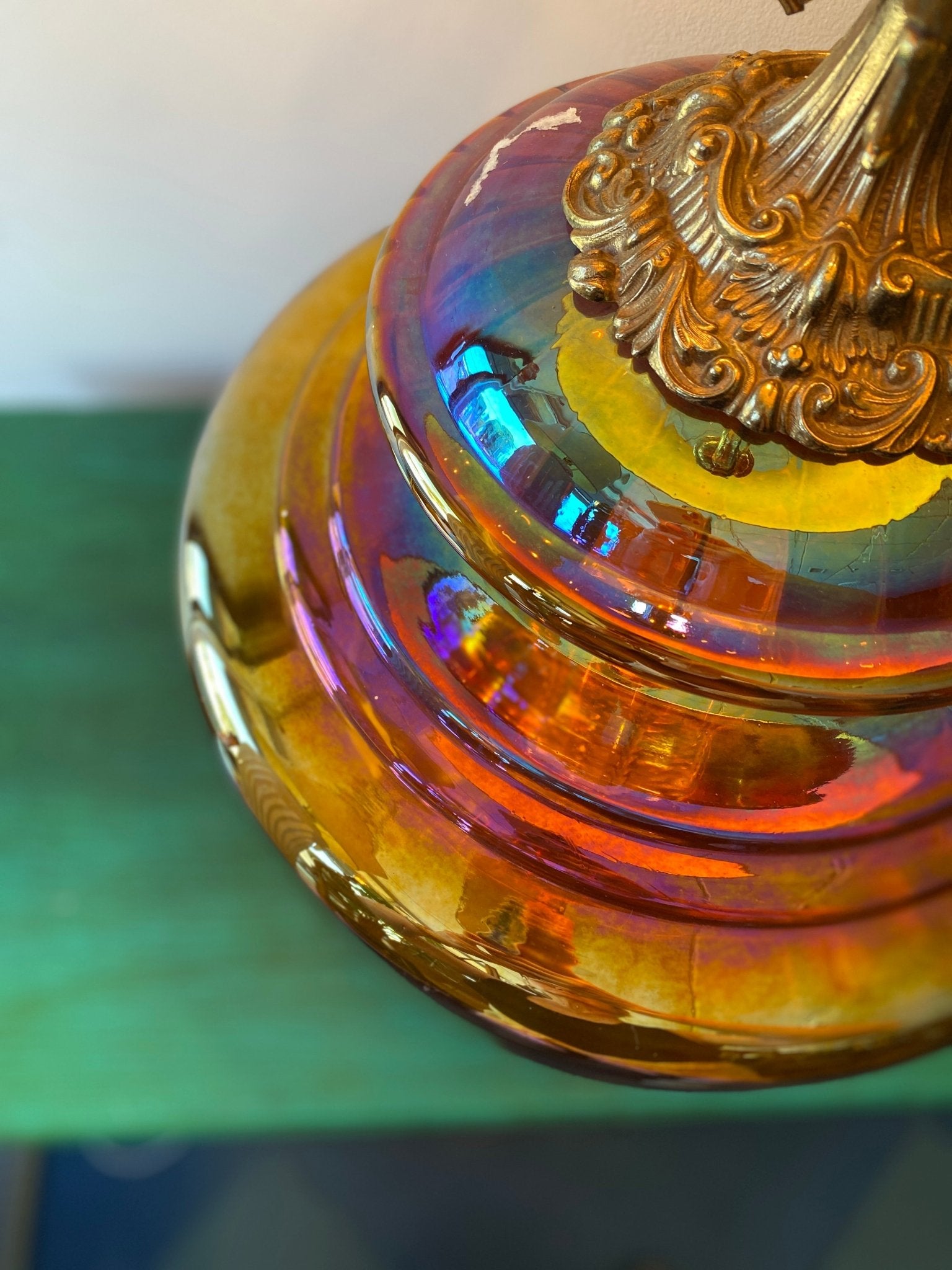 The Vintage Amber Carnival Lamp will be the star of any room.