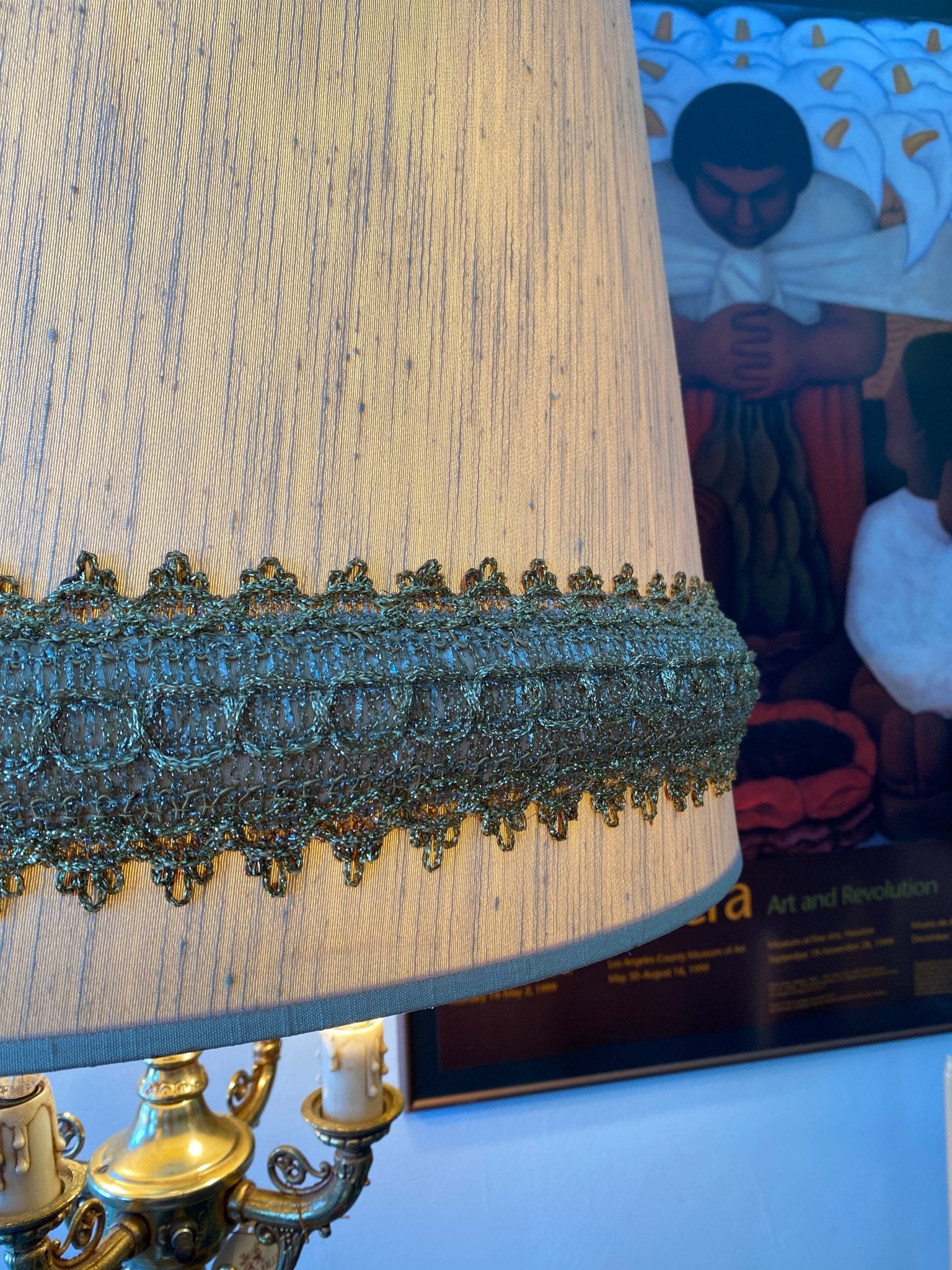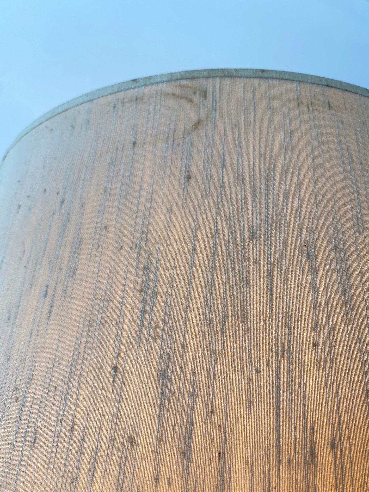 Complete with an original extra large lamp shade, this lamp is sure to add a touch of quirky vintage charm to any space.