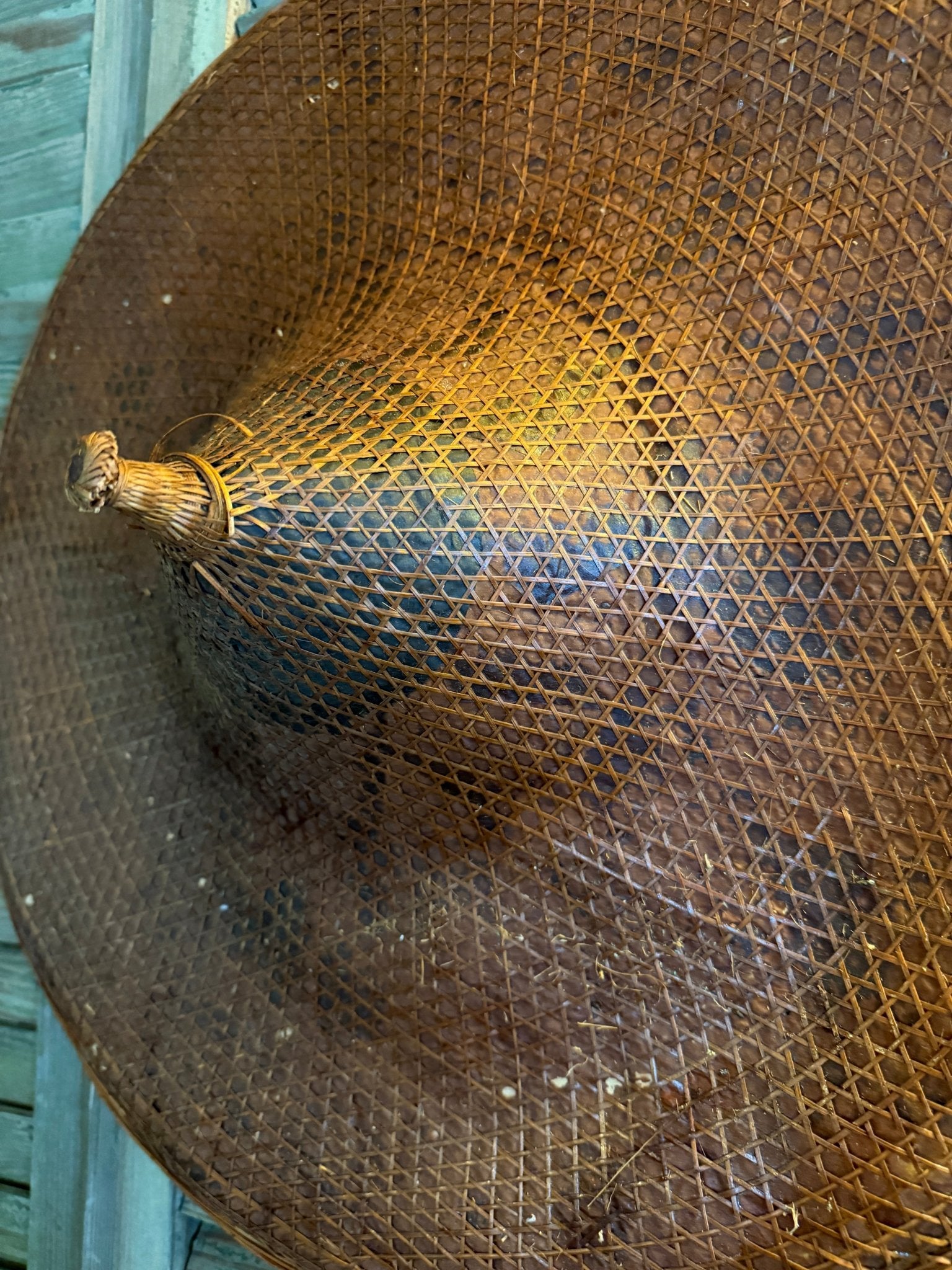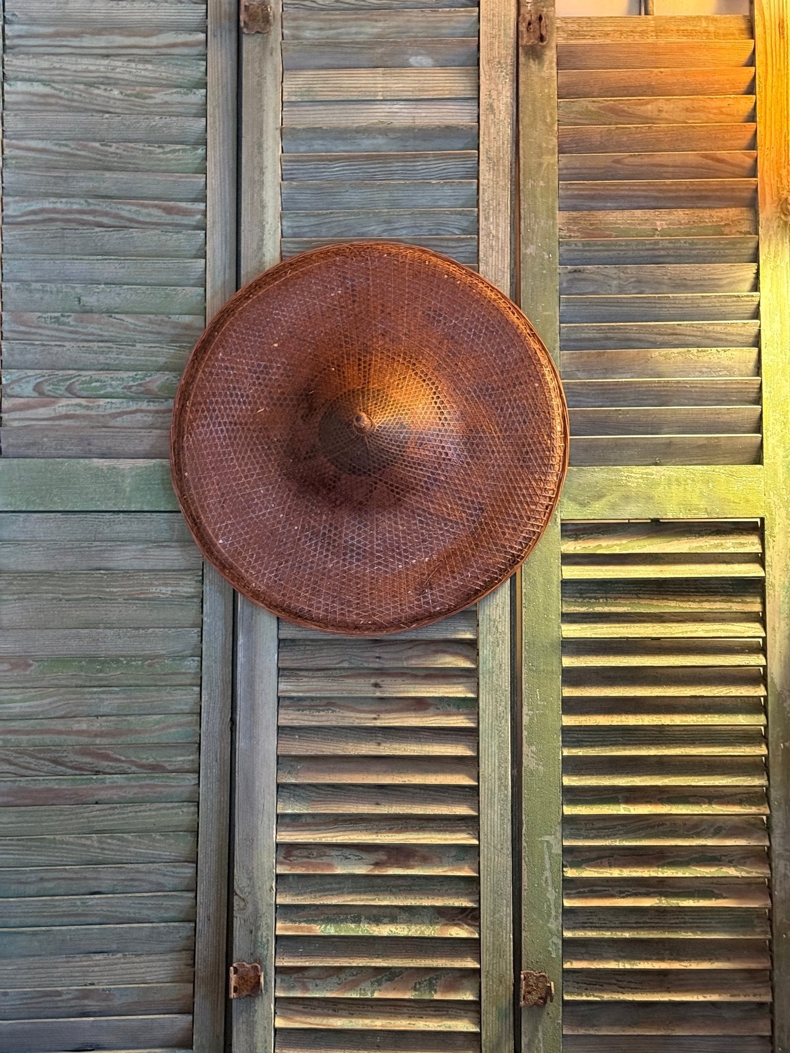 There are a few spots across the hat surface where the paint has chipped off reflecting the age.
