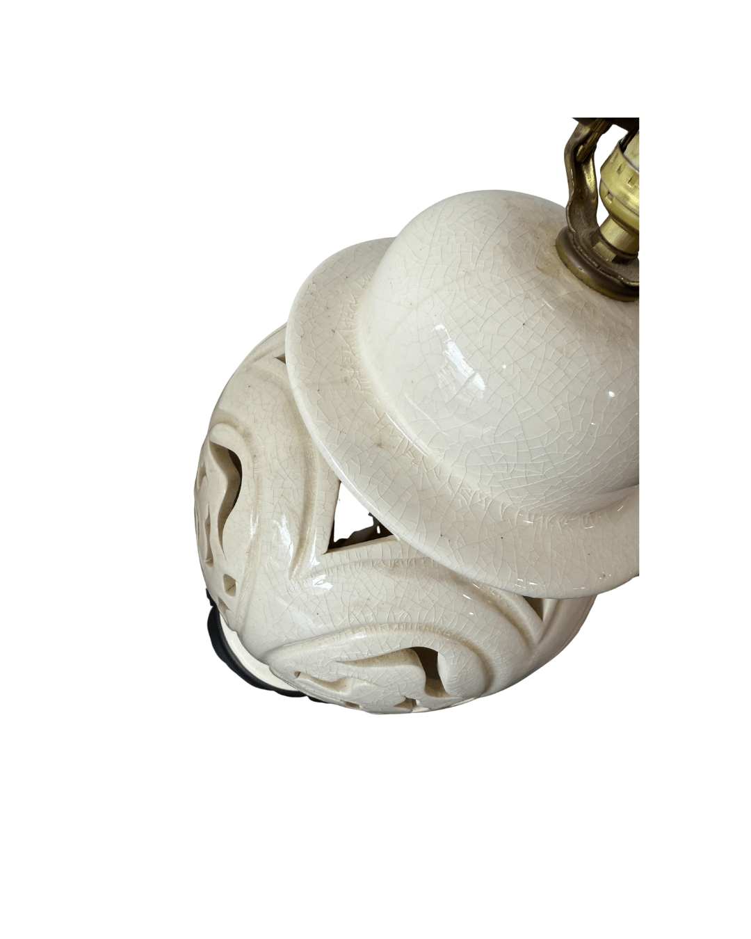 This is a beautiful set of mid-century table lamps with a pierced design.