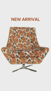 This is a gorgeous gently used MCM Style Floral Swivel Chair.