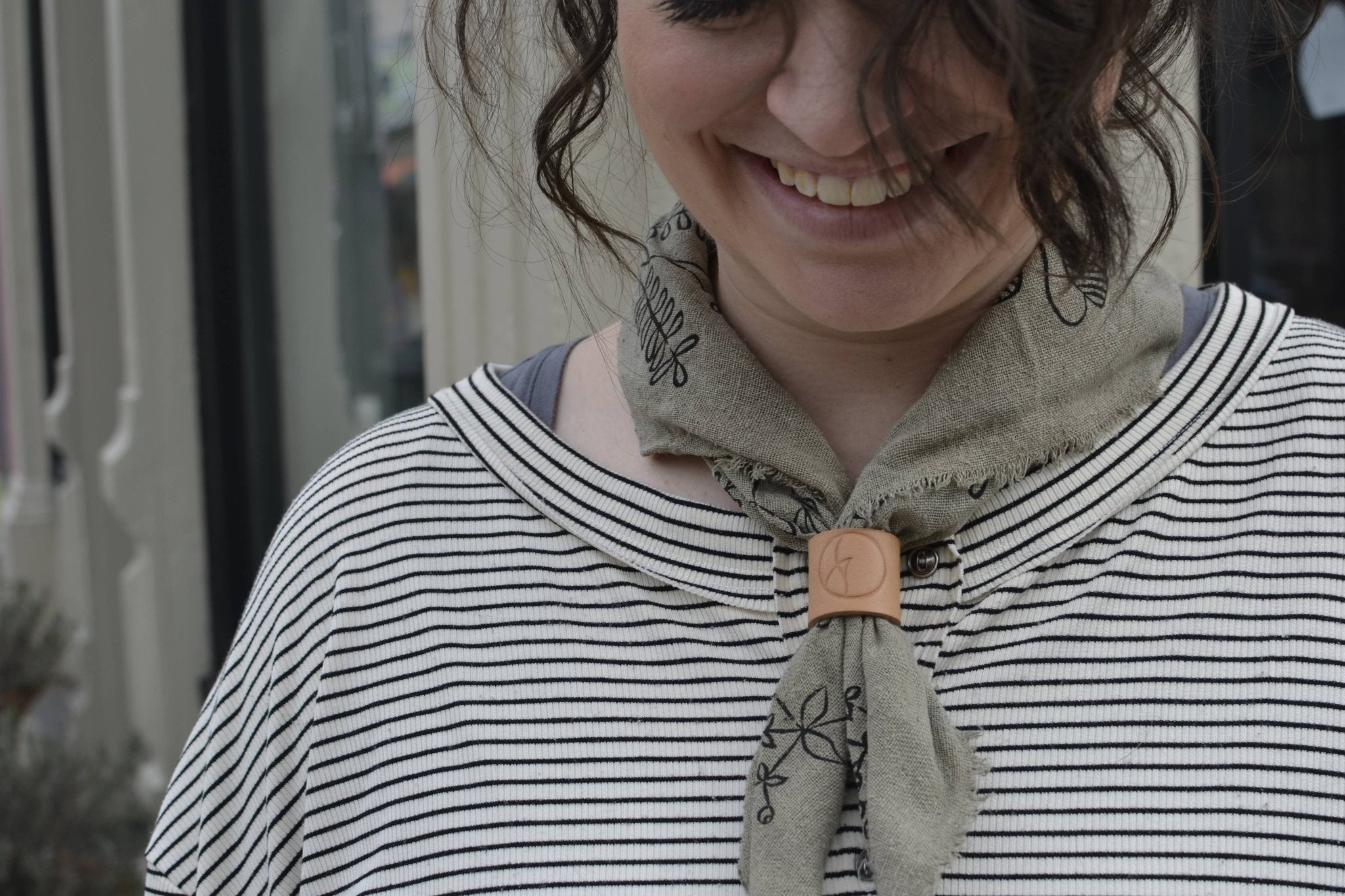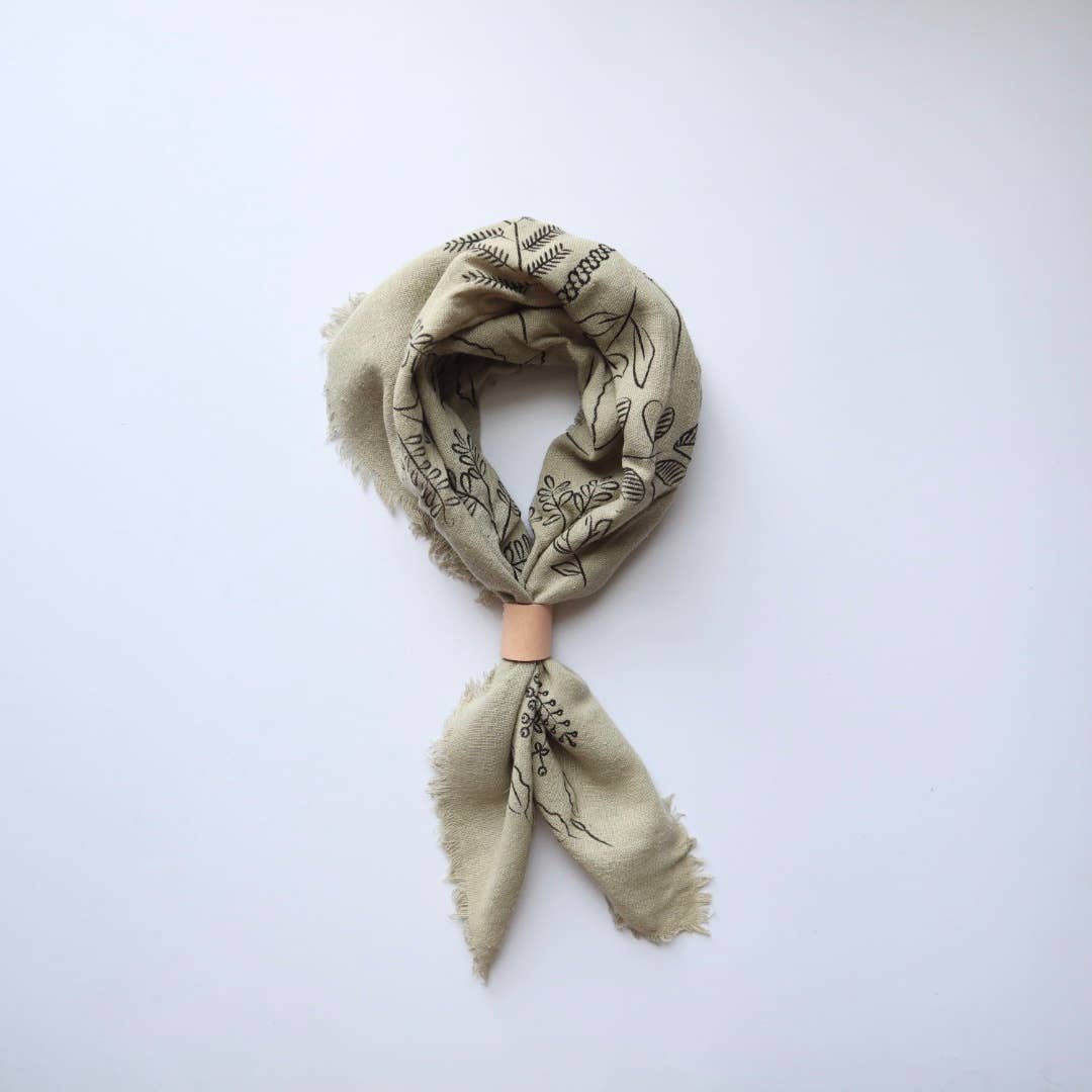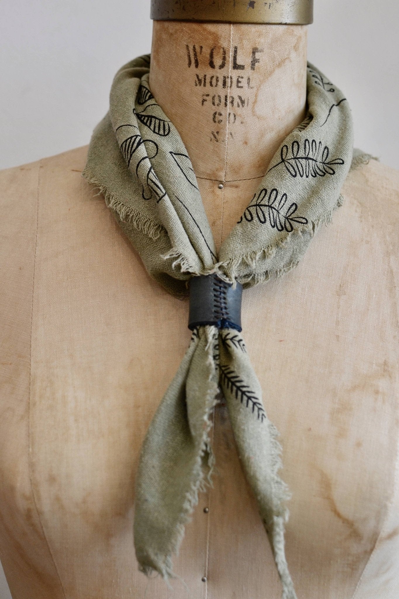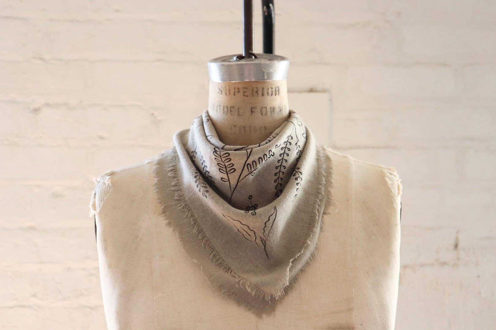 Eco Raw Studio - Sage Grey Botanical Print Naturally Dyed Bandana (black)