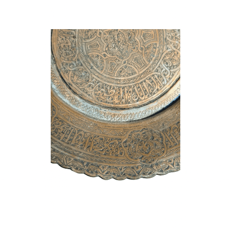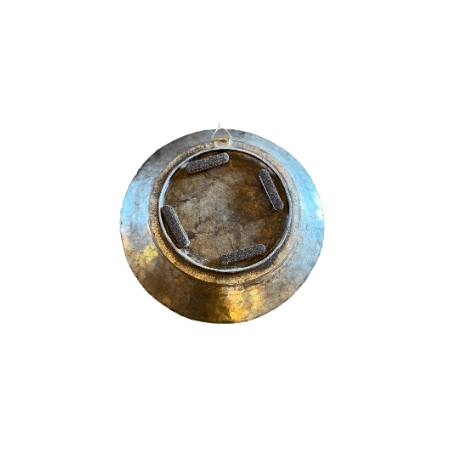 This striking vintage plate features intricate embossed detailing and a rich bronze hue.